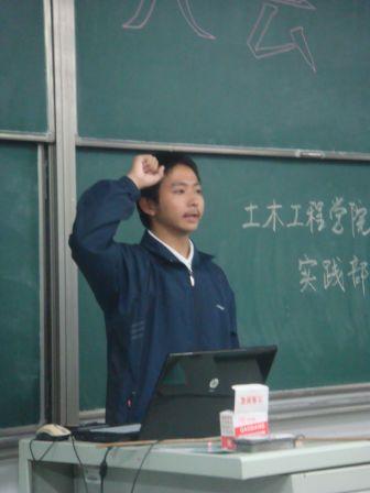 在大会上,实践部部长徐飞首先发言,他简单介绍了土木学院青年志愿者协会和志愿者的工作。接着,