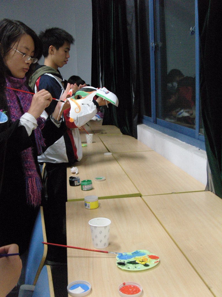 “绘面具 聚一堂”这次活动能让大部分人参与其中,乐融其中,虽然我们不期能学到多少,但就在耳濡目染中我们感受到了传统文化,这也就是举办这次活动的初衷,而参加活动的同学们在纷忙的日子里,又娱乐了生活,呜呼快哉!(文夏文彦/图 夏文彦)