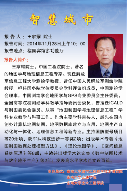 王家耀院士学术讲座“智慧城市”【11月28日】