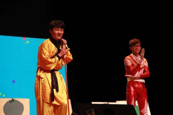 首先,土木六班的小鲜肉们带来了一首积极向上、充满正能量的《蓝莲花》,活跃了现场气氛。随后主持人宣布演出正式开始。
