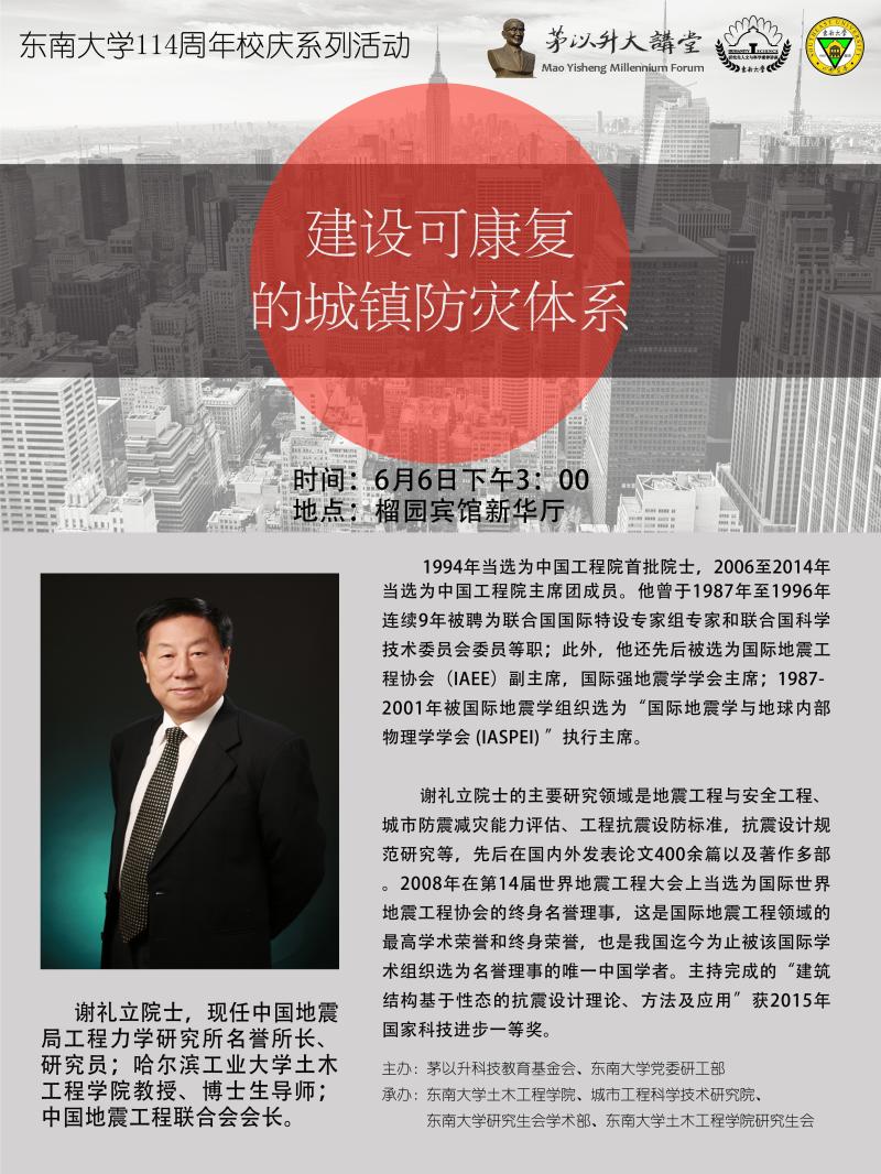 校庆系列活动(茅以升大讲堂)——谢礼立院士学术报告会