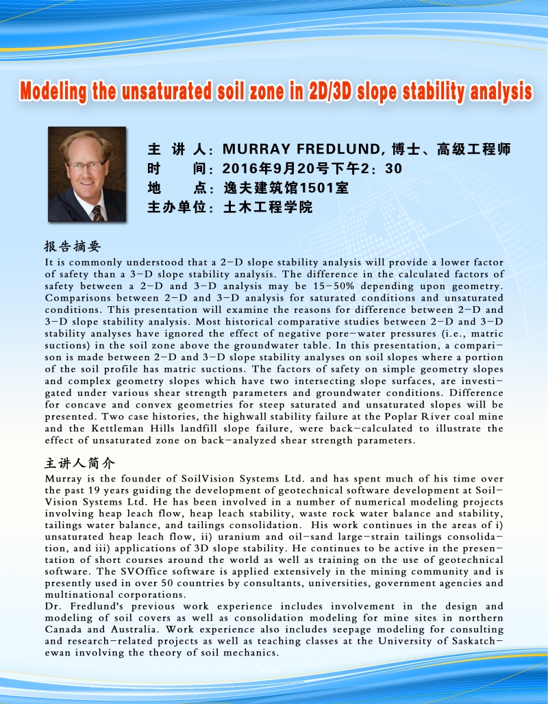 SoilVision 系统有限公司 Murray Fredlund 博士学术报告会