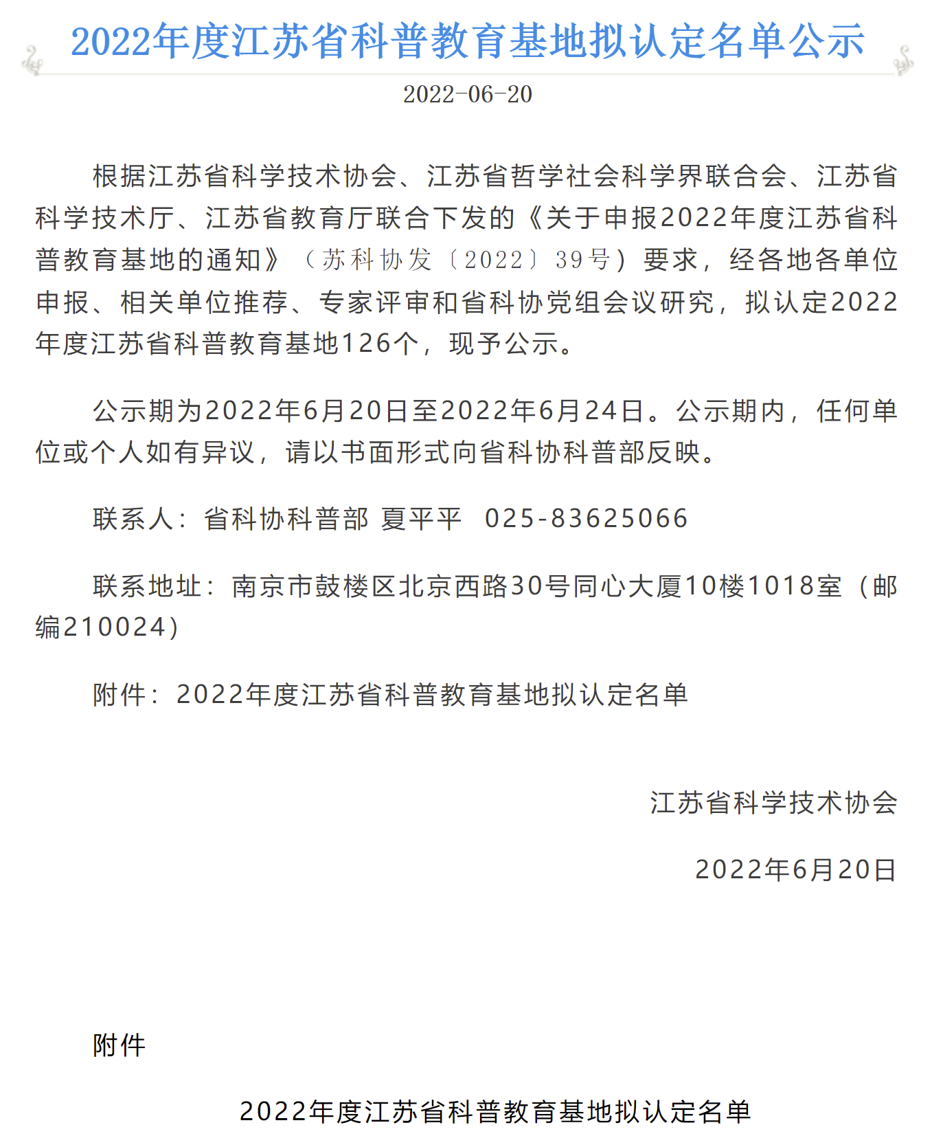 近日,江苏省科学技术协会完成了2022年度江苏省科普教育基地认定工作,并发布了“2022年度江苏省科普教育基地”认定名单,bevictor伟德官网智慧土木与抗震防灾科普基地获得认定。