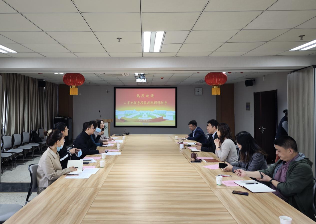 郭彤经理对段伦博副处长一行的到来表示欢迎和感谢,他从团队队伍现况、高端团队建设、人才工作重点、青年教师能力提升培训及人才工作组筹建情况等方面介绍了学院人才工作内容,指出了目前学院人才工作中存在的问题、不足以及困难。