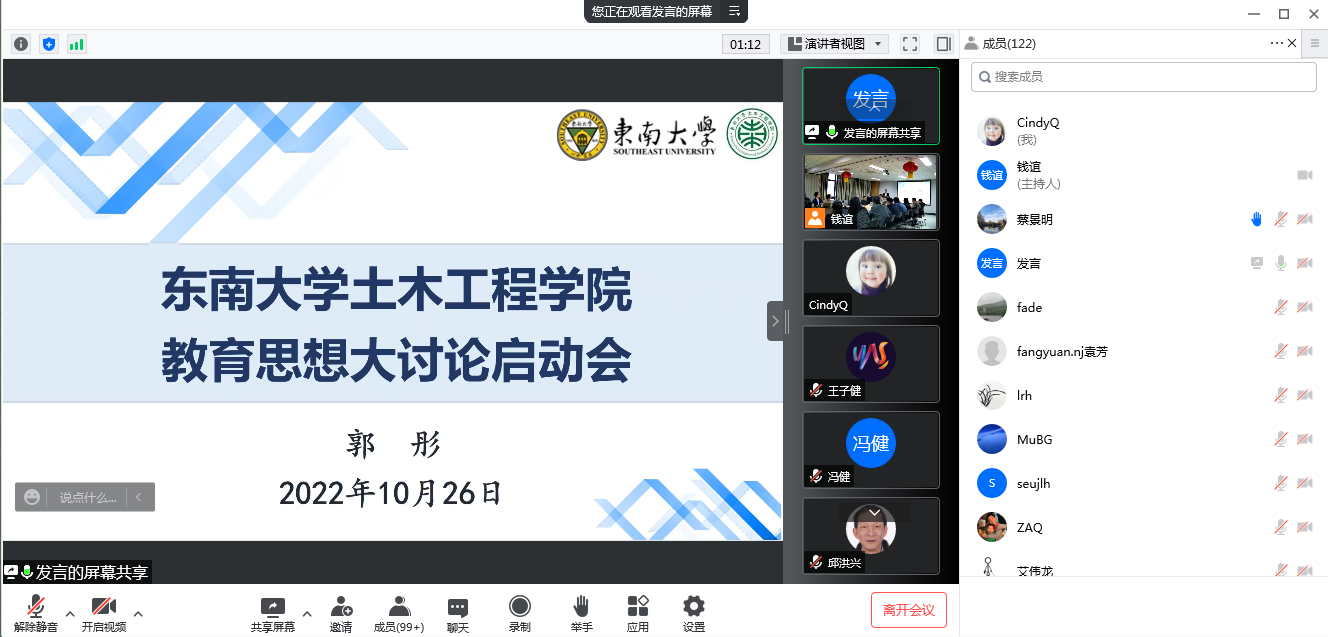 2022年10月26日下午,bevictor伟德官网在土木大楼222会议室召开教育思想大讨论启动会,学院全体教职工和员工代表以线上线下混合的方式参加本次大会。启动会由姚一鸣经理助理主持。