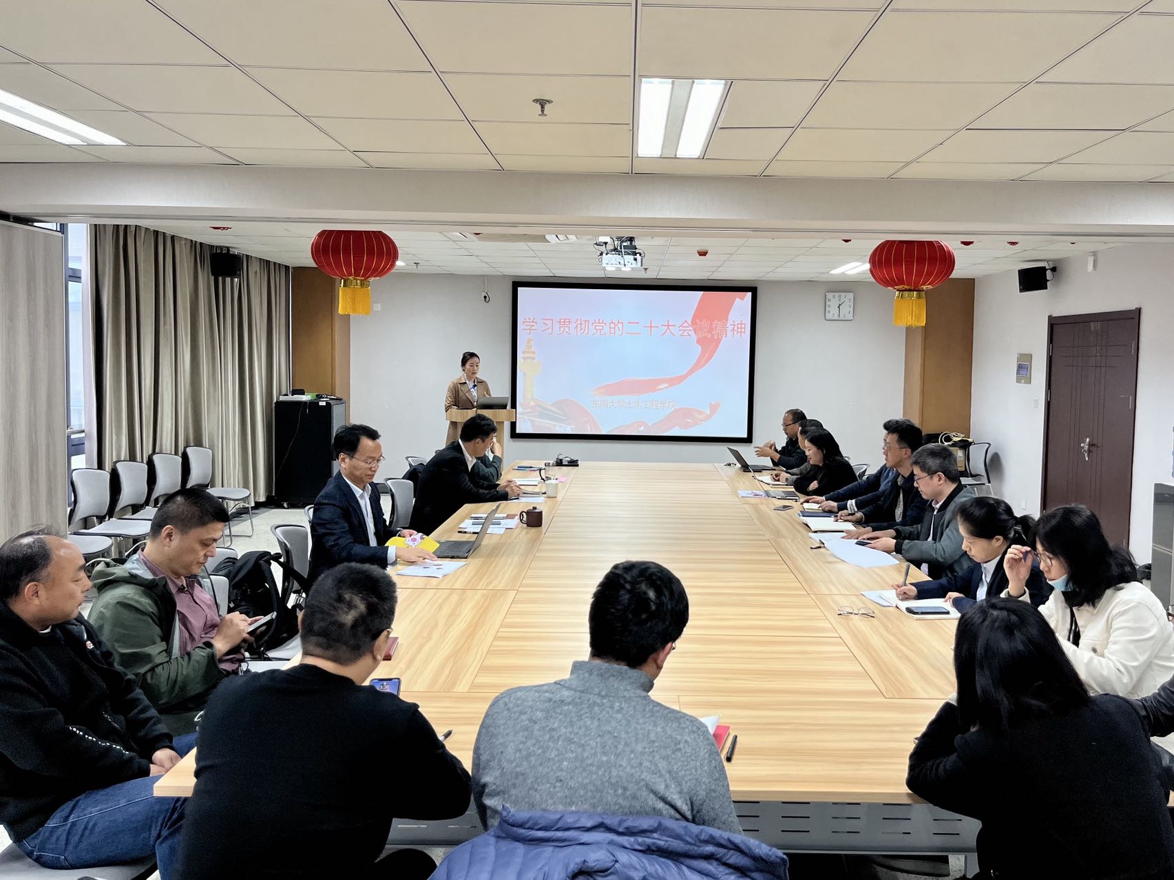 参会的其他老师也踊跃发言。大家一致认为,党的二十大鼓舞人心、催人奋进,表示将更加紧密地团结在以习近平同志为核心的党中央周围,坚持以习近平新时代中国特色社会主义思想为指导,踔厉奋发,勇毅前行,落实立德树人的根本任务,勇攀学科高峰,在新征程中做出更大贡献!