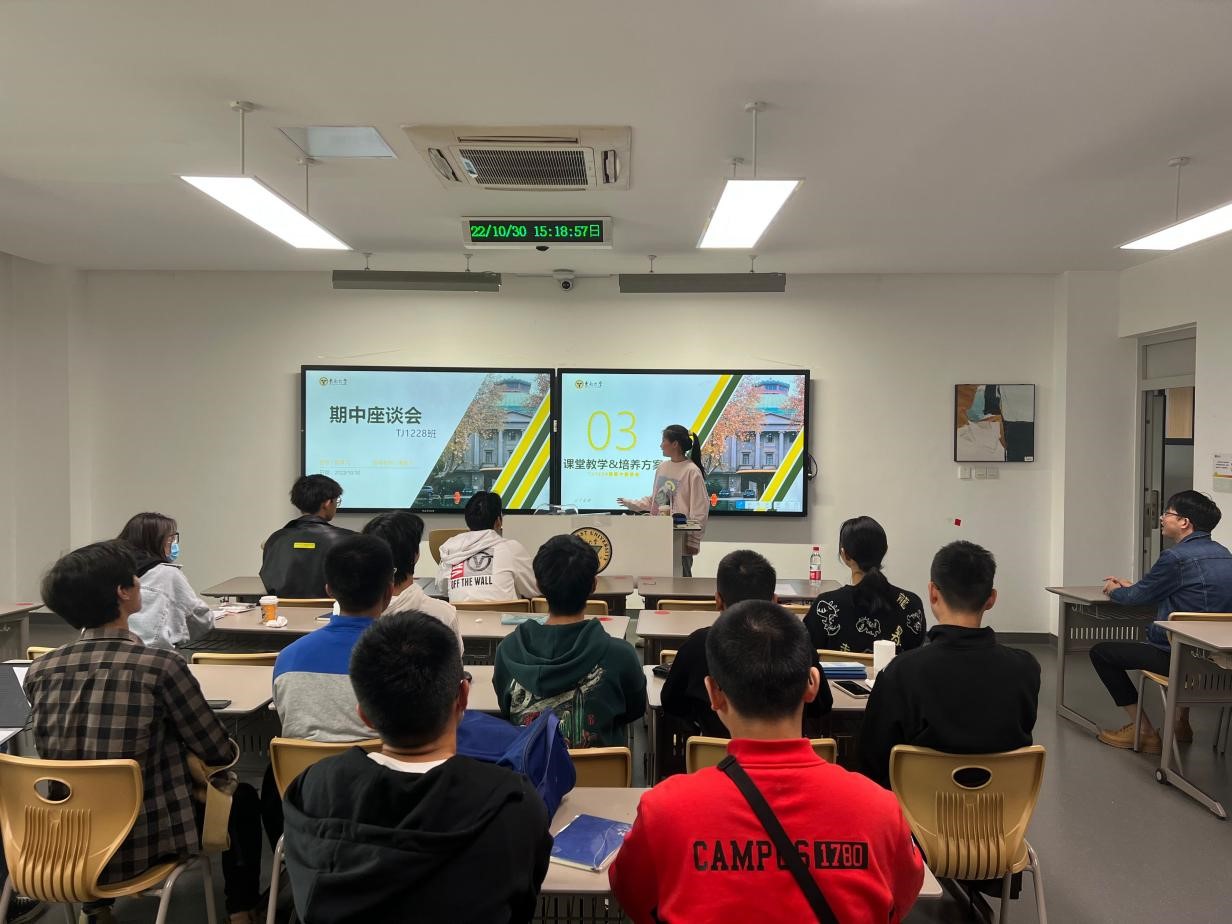少年易学老难成,一寸光阴不可轻。学期过半,为了解每位同学关于课堂教学、班风学风等方面的看法和建议,扎实开展期中教学检查,公司大一至大四各班级,于第9周纷纷邀请班主任、学督、班指导,自主召开期中教学主题班会。各班班委认真收集班级内普遍、有代表性的问题,座谈会上有备而来,按顺序对本班课堂教学、班风学风,以及学业规划等问题进行汇总发言,集中表现为低年级课程实验时间段过于集中、个别教师上课方式不易被接受、少数员工学习动力不足、与老师沟通不够等。