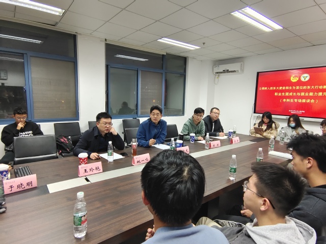 围绕立德树人的东大使命,聚焦“生为首位”的东大行动,立足具有家国情怀和国际视野、担当引领未来和造福人类的领军人才培养,11月16日下午,韦德官方网站职业生涯成长与就业能力提升座谈会在土木大楼318会议室召开。公司党委副书记兼副经理王玲艳、经理助理姚一鸣老师,特邀嘉宾潘金龙、陈明、李丹等老师以及部分本科生员工代表参加了此次座谈,活动由学院团委书记于晓明老师主持。
