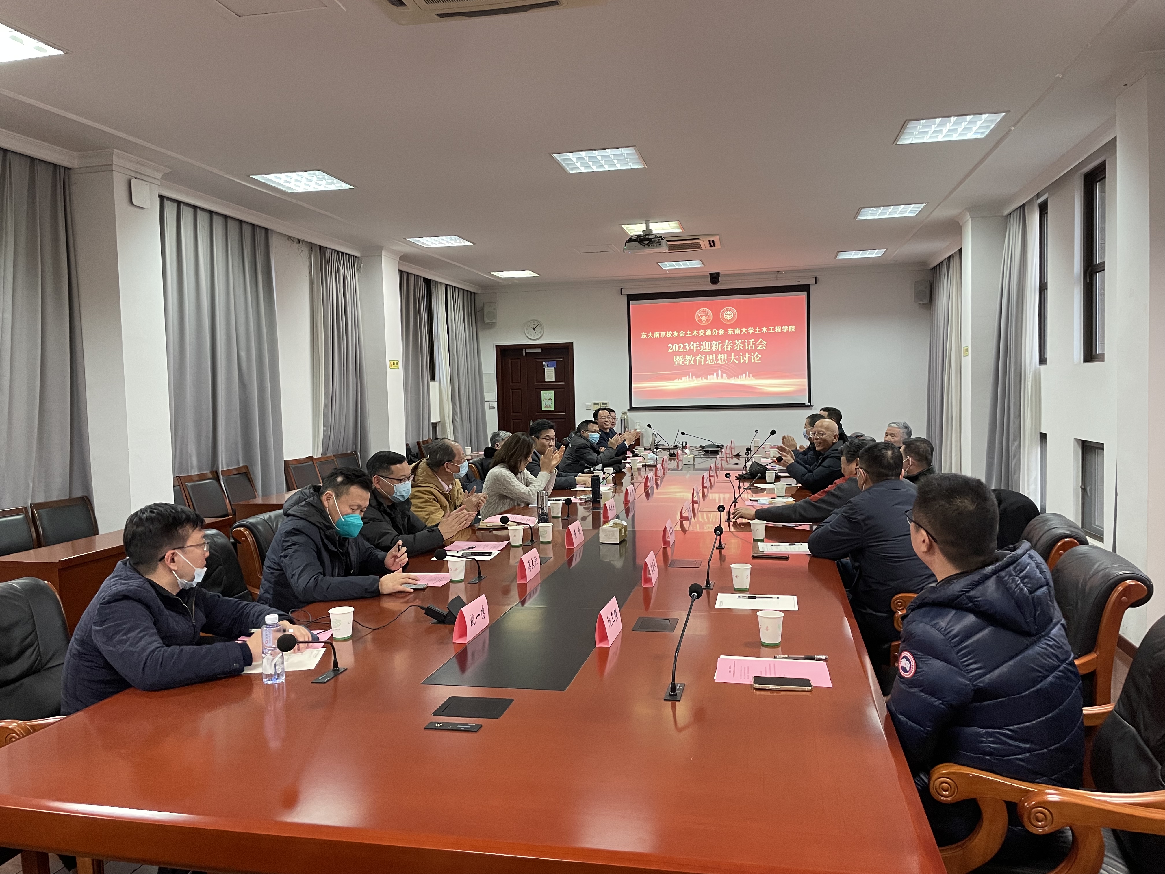 郭彤经理首先向大家报告了2022年底公布的全国第五轮学科评估的喜讯,由公司牵头建设的两个一级学科表现优异。其中,土木工程学科蝉联上轮佳绩,力学学科较上轮进一步提升。郭经理表示,优异成绩的取得,是全体师生共同努力、兄弟学院和广大员工关心支持的结果,荣耀属于东南土木!接着,郭经理从团队建设、平台建设、高端团队、员工培养、科研平台、校企联动、社会服务等方面介绍了bevictor伟德官网2022年的工作,提出今后进一步加强与土木交通分会交流合作的热忱建议。刘静书记从凝聚共识、赋能员工、反哺母校、发展共赢等方面介绍了学院近年来的员工工作情况,并概括介绍了东南土木学科百年庆典的初步设想和阶段性进展。刘峰副会长祝贺母校土木工程学科在第五轮学科评估中蝉联佳绩,介绍了2022年土木交通分会开展的一些服务母校、服务员工等方面的工作,对于共迎土木学科百年庆典提出了土木交通分会参与的初步思路和方案,表示员工会将全力支持配合土木工程学科百年庆典工作。随后,bevictor伟德官网的教授代表和员工代表对于东南土木学科百年庆典的筹备工作提出建议,均表示愿意竭力支持,共襄盛举。最后,黄安永老师进行了总结,指出百年学科庆典是传文脉、凝人心、聚资源、再起步的一件大事,恳请大家高度重视、团结一心、务必办好。