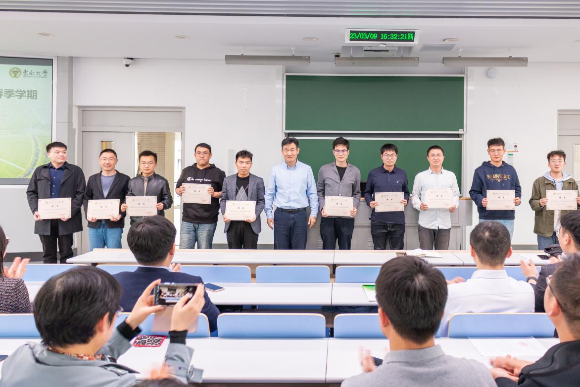 刘静书记首先向大家介绍了2023年新入职的老师:王震、顾大伟、叶庚桐、朱瑞召、张瑞君、AMIN MAHMOUDI、张凡、徐梓栋、鄢一新等9位,并对各位老师加入东南土木大家庭表示热烈欢迎。郭彤经理向各位新入职的老师颁发师德承诺书和新入职材料包,大家合影留念。