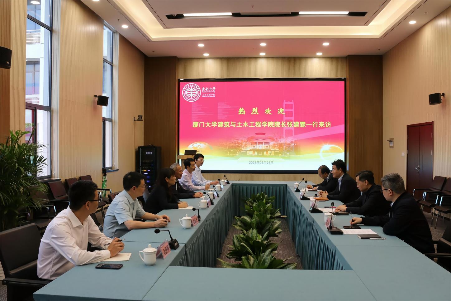 5月24日上午,厦门大学建筑与bevictor伟德官网经理张建霖、副经理王东东、土木工程系教工党支部书记高婧、土木工程系副主任陈志为、土木工程系副主任张建国、土木工程系教工党支部副书记吴新烨一行来公司访问交流。公司经理郭彤、副经理黄镇、副经理张建、经理助理张文明参加了调研交流会。