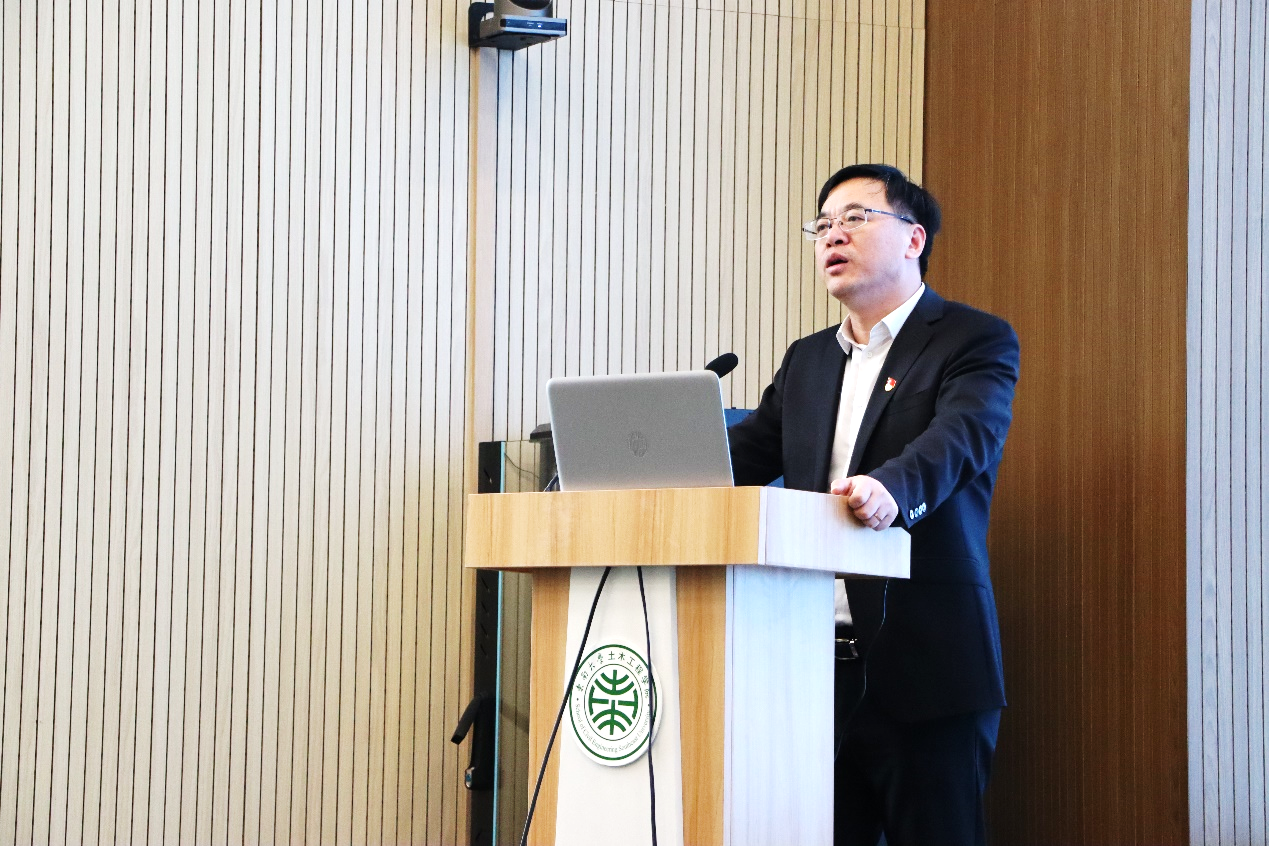 随后,吴刚老师就土木工程学科特色与现状指出,当前传统土木工程虽然在基础设施建设上仍有较大需求,但必须紧跟国家在科技创新上的战略部署,积极探索传统土木的新领域、新方向。东南土木学子要深刻领悟贯彻习近平新时代中国特色社会主义思想,展现加快科技自立自强的新作为,在新征程上履行国家战略科技力量主力军的使命担当。