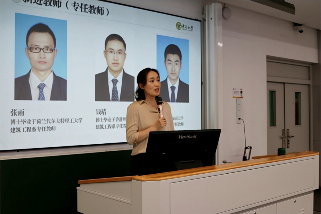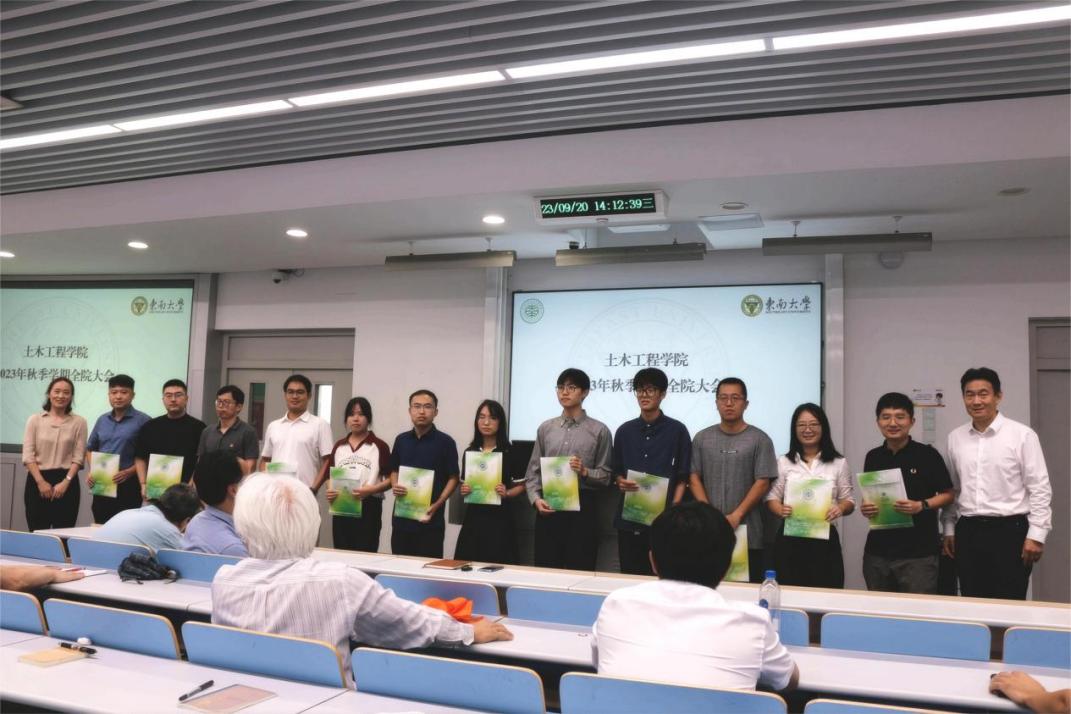 刘静书记首先向大家介绍了2023年秋季学期新入职的张雨、钱靖、杨杨、刘沛沛、陈振宇、朱瑨、马然、孙震、韩天然、李柔、徐峰、胡顺、陈霈泽、姜恒等老师,对各位老师加入东大土木大家庭表示热烈欢迎。郭彤经理向各位新入职的老师颁发了师德承诺书和新入职材料包。全体教职工观看学习了《新时代高校教师职业行为十项准则》视频宣讲。