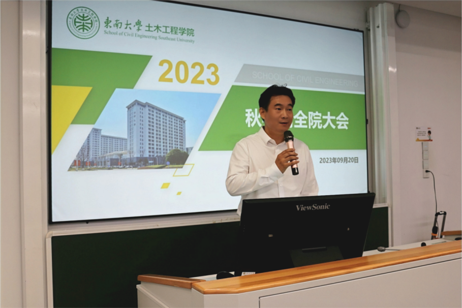 随后,郭彤经理对学院2023年上半年的工作进行了回顾。他指出,一学期以来,在全体师生员工的共同努力下,土木工程学科第二轮“双一流”达到中期建设目标,团队建设国际评估取得优秀成绩,国际影响力得到不断提升,科研项目及经费创佳绩;学院成功举办了系列高影响力学术会议,完成本科教学实验室建设储备项目论证,获国家级实验教学示范中心建设优秀案例推荐,本科专业建设和公司产品工作取得丰硕成果。在下半年的工作部署中,郭经理强调,学院未来应聚焦于“大平台、大项目、大团队、大成果”,坚持“守正创新”的工作思路,面向国家战略需求和国际科技前沿,结合国家新型城镇化、一带一路、海洋强国、交通强国等发展战略,积极探索新型研究方向。他提出几点要求:一是狠抓落实,加快推动平台建设;二是提前部署,做好指南方向规划和重大项目申报工作;三是聚焦“四力”培养,进一步提升课程教学质量,做好教育部本科公司产品审核评估工作。