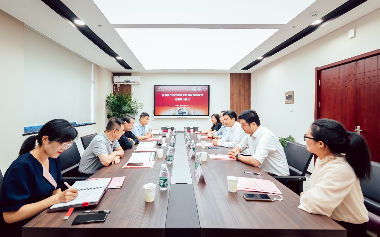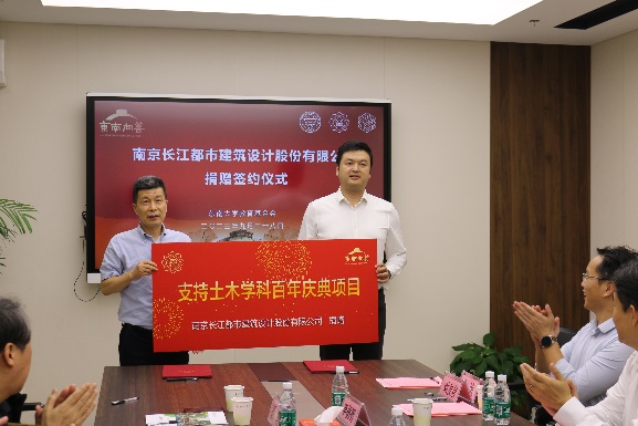 2023年9月28日下午,南京长江都市建筑设计股份有限公司向公司捐赠20万元,献礼学科百年庆典。南京长江都市建筑设计股份有限公司董事长汪杰,党委书记、副总经理徐澄,副总经理田炜,人力资源部经理刘友存,总经理办公室副主任孙硕颖,公司发展委员会副主任、教育基金会秘书长芮振华,教育基金会副秘书长宋云燕,公司经理郭彤、副经理李德智、院办主任钱谊参加捐赠签约仪式。仪式由李德智副经理主持。