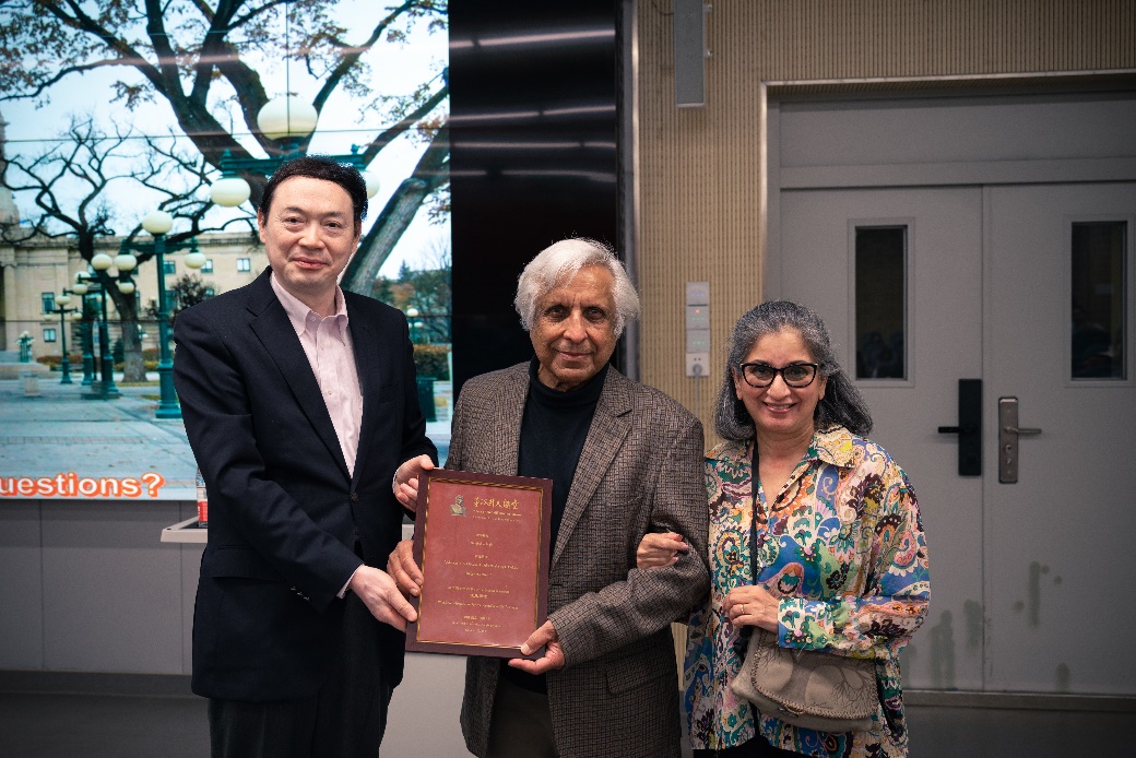 吴智深教授为三位院士颁发了牌匾并合影留念。下午5点,在热烈的掌声中,茅以升大讲堂取得圆满成功。会后,Mufti院士、吴智深教授同职工亲切交流学习情况。