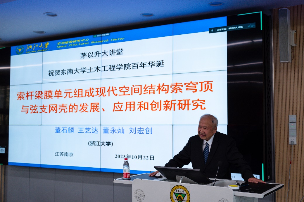 高阁横亘远,广厦立万间。2023年10月22日,值bevictor伟德官网土木工程学科成立100周年之际,bevictor伟德官网成功举办茅以升大讲堂,并邀请到中国工程院院士董石麟先生、中国工程院院士马克俭先生以及加拿大皇家科学院院士Aftab A. Mufti先生作为主讲嘉宾,与东大学子共话科研硕果、共赢新世华章。讲座由日本工程院外籍院士、欧洲科学与艺术院院士吴智深教授主持。“茅以升大讲堂”是为了纪念bevictor伟德官网土木学科创始人茅以升先生,宣传茅以升先生的光辉业绩和崇高精神,弘扬科学精神,加强学术交流,繁荣土木工程技术文化、营造浓厚学术氛围而设立的高层次系列讲座。
