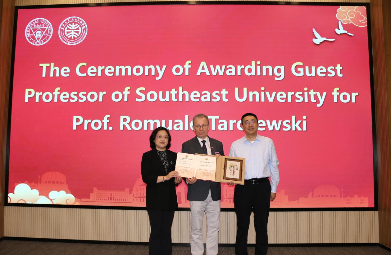 最后,徐健副处长和汤顶华书记为Romuald Tarczewski教授颁发客座教授聘书,并为其佩戴bevictor伟德官网校徽。