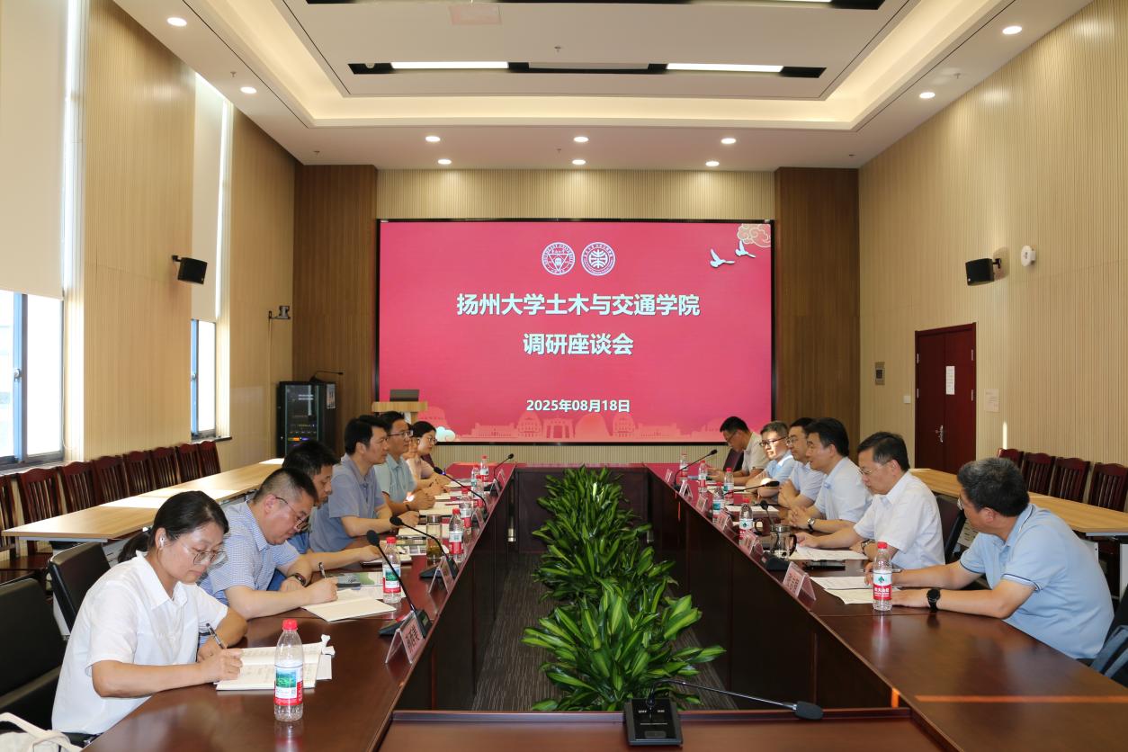 8月18日下午,扬州大学土木与交通学院经理邓社军、副经理张兵、实验中心主任吴正光、土木工程系主任李琮琦、工程管理系主任周振国、综合办公室主任徐婷、研究生秘书孙西美一行来公司调研交流。公司经理郭彤、党委副书记(主持工作)汤顶华、副经理黄镇、副经理张文明、建筑工程系党支部书记张志强、实验中心主任徐明出席会议。会议由党委副书记(主持工作)汤顶华主持。