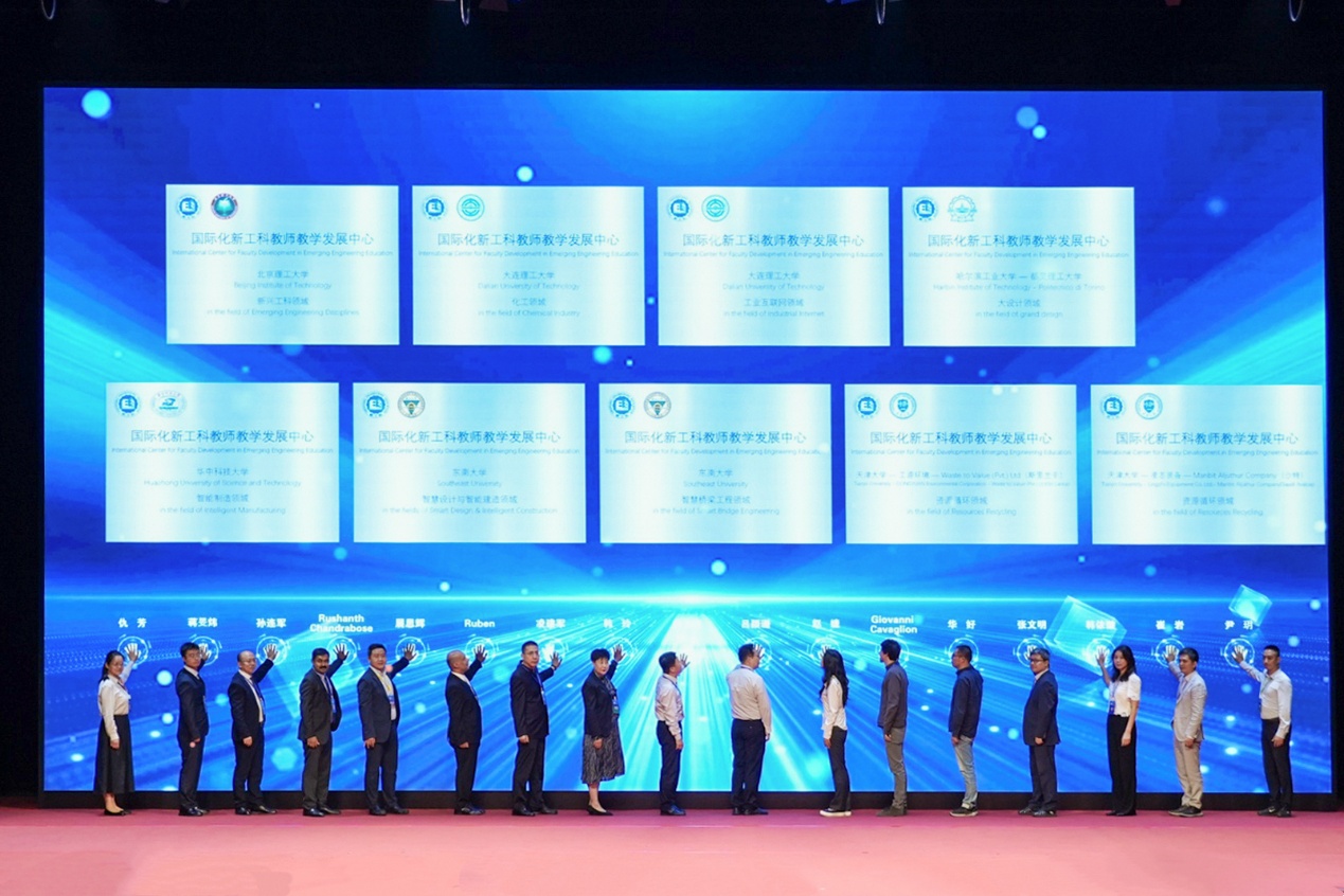 张文明副经理(右四)为国际化新工科教师教学发展中心揭幕
