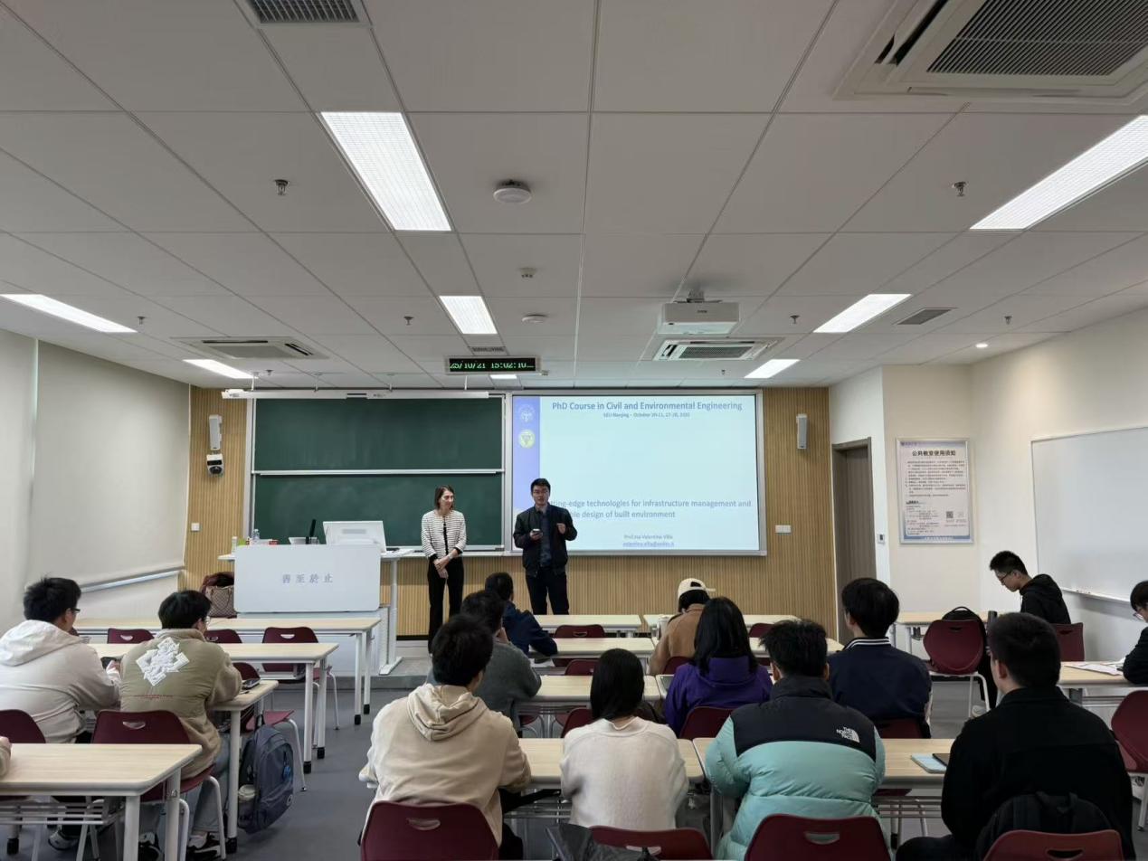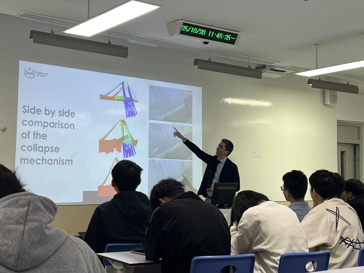 此次访问恰逢都灵理工大学四位专家在bevictor伟德官网开设持续2周的土木工程专家前沿系列讲座。自10月20日起,他们共同主讲题为“前沿科技赋能基础设施运维与可持续设计”的国际课程,内容涵盖桥梁网络风险决策与韧性提升(Domaneschi副教授)、BIM/GIS与数字孪生驱动的可持续建筑管理(Villa副教授)、AI赋能的结构优化设计(Carlo教授)以及面向可持续发展的大型钢结构AI优化与生命周期评估(Cucuzza博士)等前沿领域。该系列讲座为东大师生带来了一场高水平的学术盛宴,充分展示了都灵理工大学在土木工程数字化、智能化与可持续发展领域的领先实力。