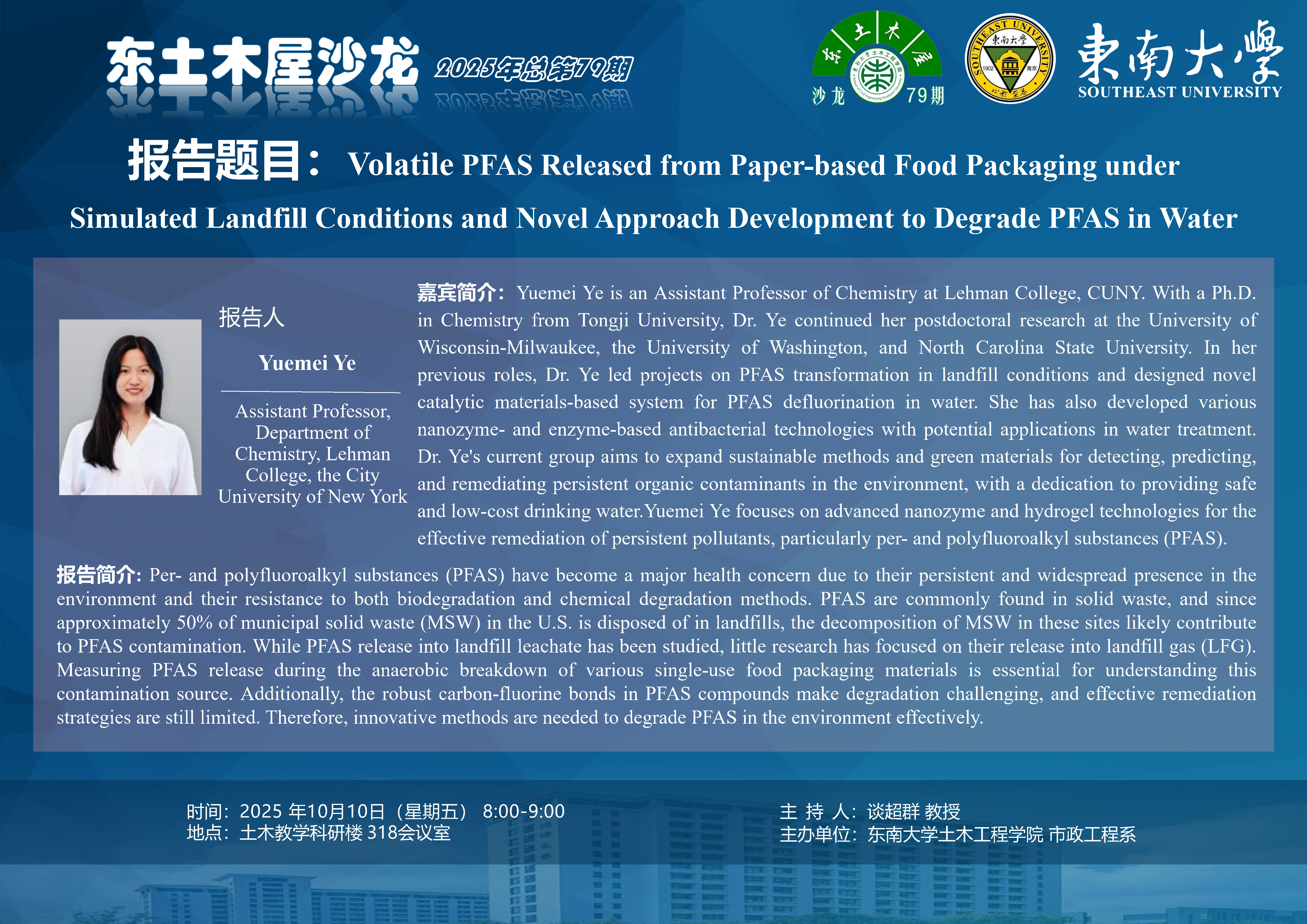 东土木屋沙龙第79期 | Volatile PFAS Released from Paper-based Food Packaging under Simulated Landfill Conditions and Novel Approach Development to Degrade PFAS in Water